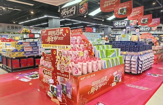 在多地商超,印有“国货有洁柔 新年有Face”主题的堆头、店中店已布置到位,成为卖场中颇具辨识度的年味一角。自去年12月中旬起,该主题营销活动已覆盖全国2151家门店,并打造了333家特色店中店。品牌方不仅集中陈列了Face系列抽纸、艺术油画纸等多场景产品,还设置了套圈游戏等互动环节,将单纯的商品购买转化为具有节日娱乐色彩的消费体验。